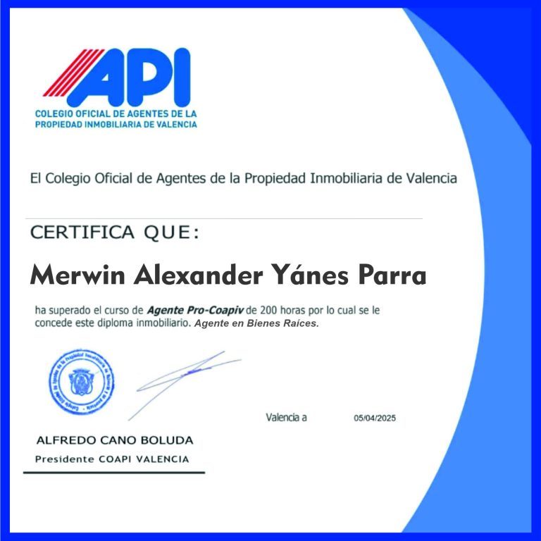 Con los 20 años de experiencias acumulados en sistemas informáticos y plataformas tecnológicas Merwin Yánes, representante de Europa Bienes Raíces, y su posterior certificación como Agente de Bienes Raíces por el Colegio Oficial de Agentes de la Propiedad Inmobiliaria de Valencia (API), y en colaboración con la enorme plataforma de Huspy, estamos renovando los Servicios Inmobiliarios mediante plataformas tecnológicas que transforman por completo la forma de comprar, vender y gestionar propiedades.